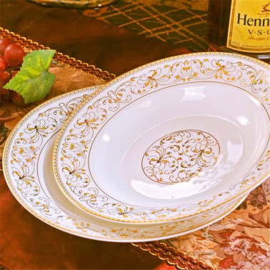 景德镇陶瓷盘餐具套装骨瓷8英寸深盘骨瓷家用盘子4件