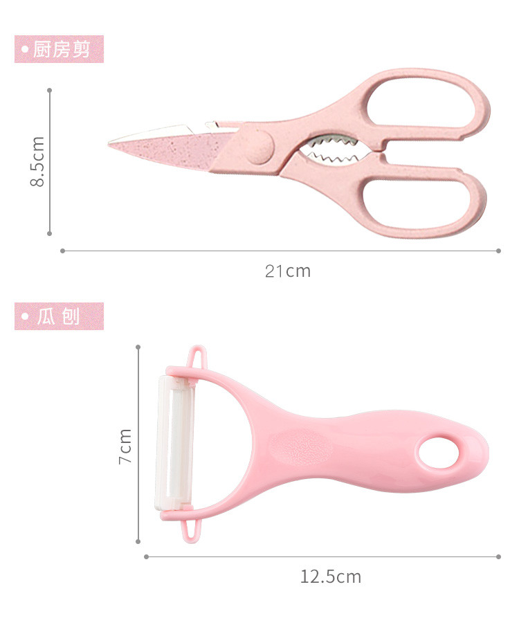 五件套厨房家用切水果小麦秸秆不锈钢菜刀水果刀剪刀刨刀刀具套装