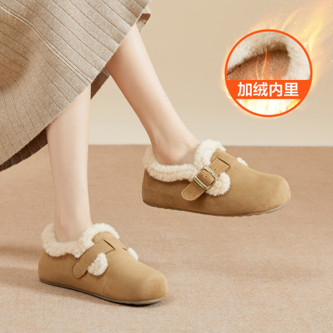 【厚底增高穆勒半拖鞋】复古勃肯鞋外穿女士流苏单鞋加绒保暖棉鞋