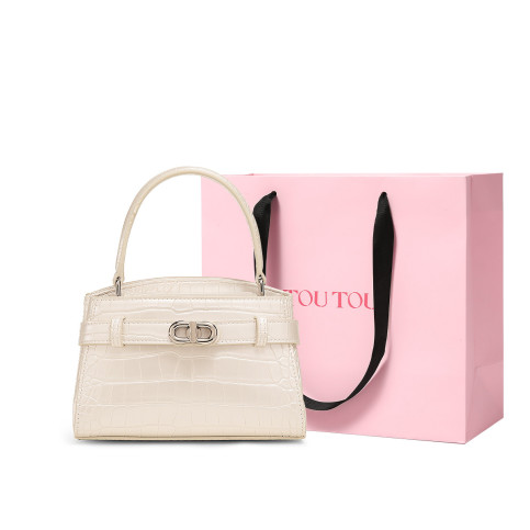 轻奢高级感手提包手拎小巧单肩斜挎包小香风白色亮面包包凯莉包女