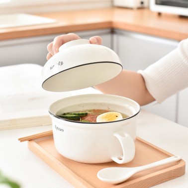 陶瓷饭碗泡面碗带盖带手柄方便面碗便当盒汤碗可微波炉