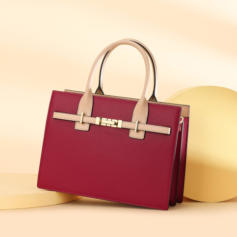 高级感潮流时尚手提包简约斜挎包撞色大容量凯莉包送女友礼物